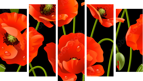 Fünfteiliges Leinwandbild - Pentaptychon: Seamless background: poppy