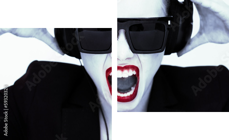 Dramatic portrait of a woman in headphones  - Zweiteiliges Leinwandbild, Diptychon