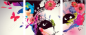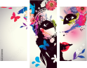 Girl with mask/Vector illustration - Dreiteiliges Leinwandbild, Triptychon