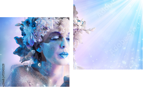 Winter portrait  blowing snowflakes  - Zweiteiliges Leinwandbild, Diptychon