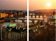 Zweiteiliges Leinwandbild - Diptychon: Panoramic view on Charles bridge and sunset Prague lights