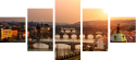 Fünfteiliges Leinwandbild - Pentaptychon: Panoramic view on Charles bridge and sunset Prague lights